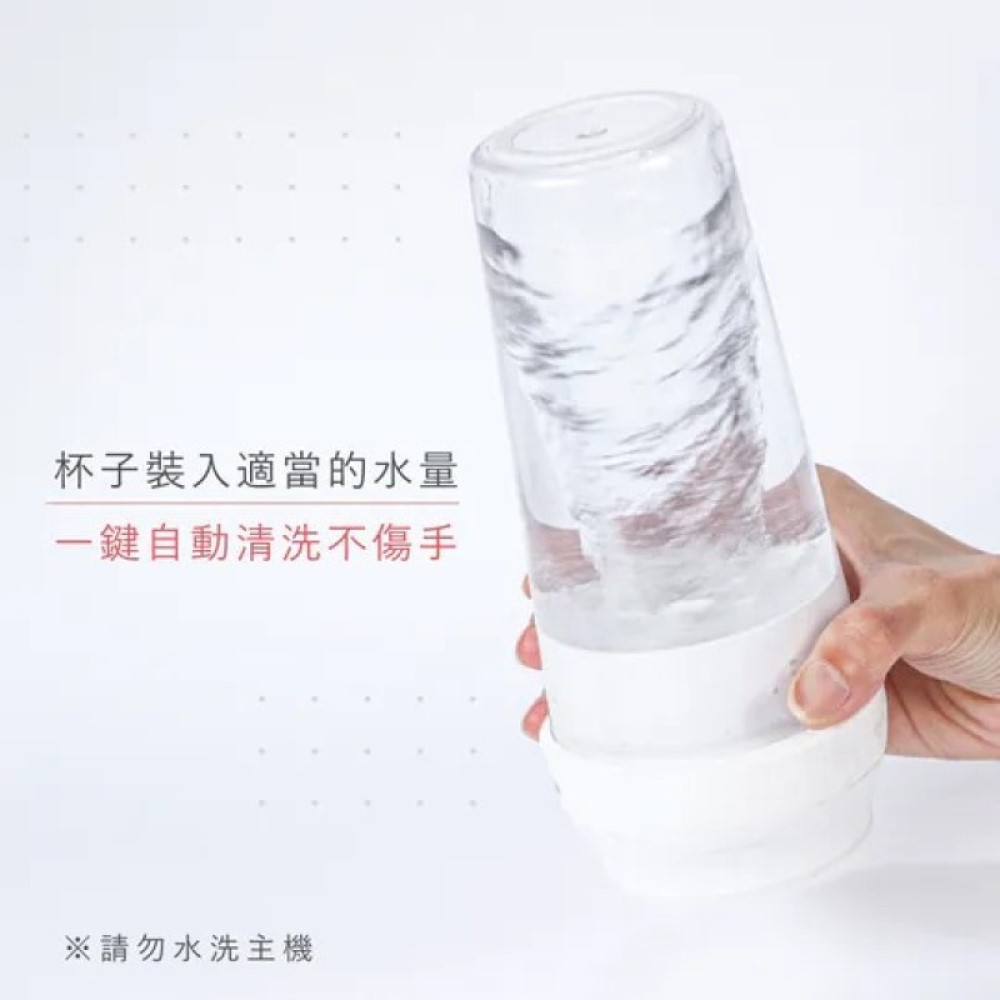 將適當水量裝入杯中,一鍵啟動,自動清洗不傷手