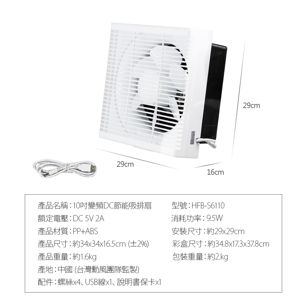 勳風 10吋DC節能吸排扇 HFB-S6110