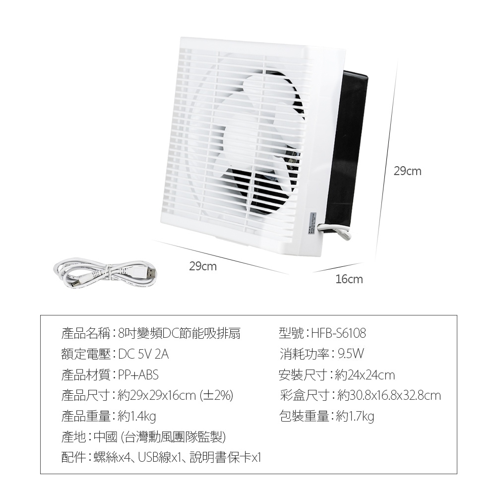 ※吸排兩用,可吸風排風/通風換氣