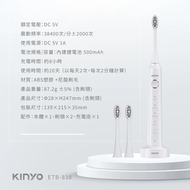 配件:本體×1、刷頭×2、充電座×1
