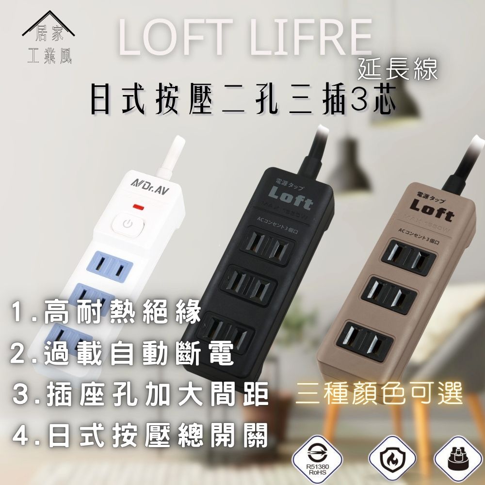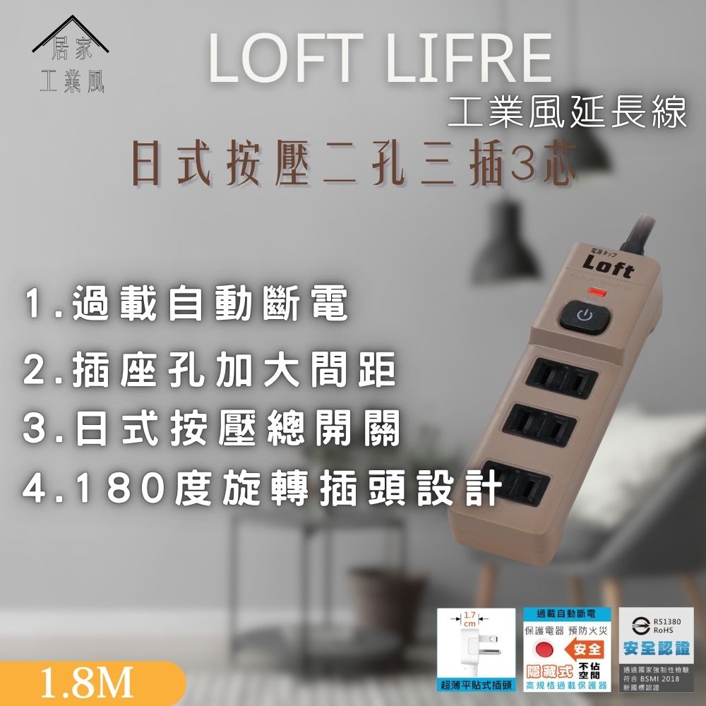 LL-755S-6 工業風2P1切3插節能延長線(6尺)奶茶色/黑色