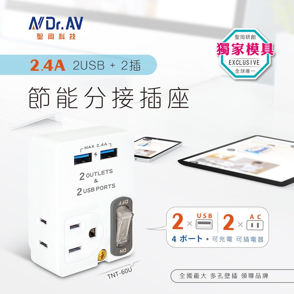✺日本熱銷百萬款,2USB+2智能插座