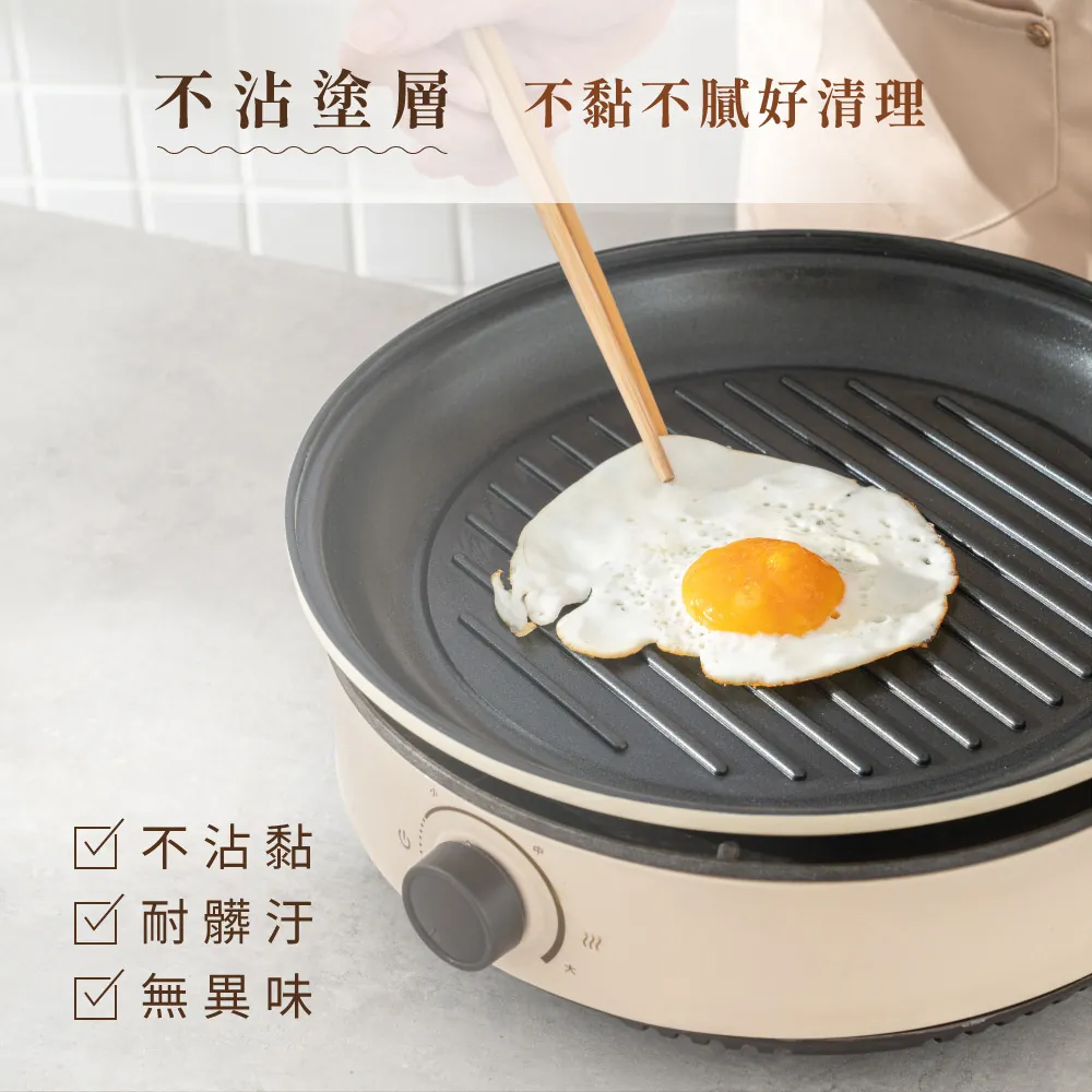 大面積O28cm煎烤盤,油切溝槽設計