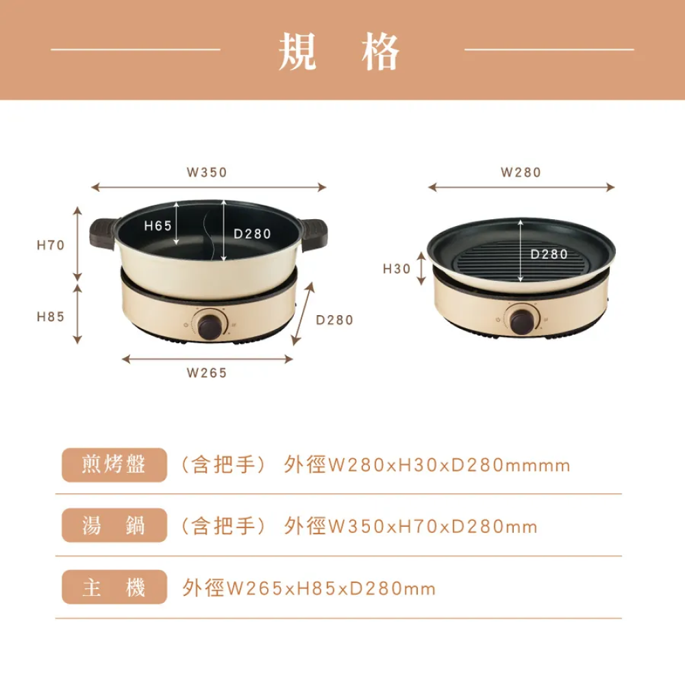 配件:鴛鴦鍋x1、烤盤x1、玻璃蓋x1