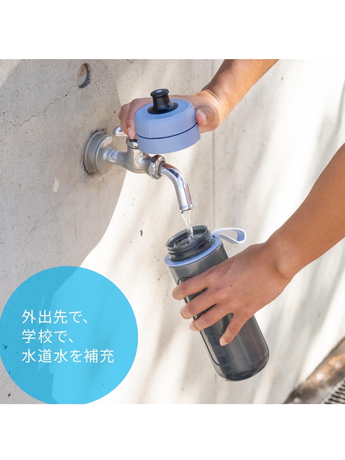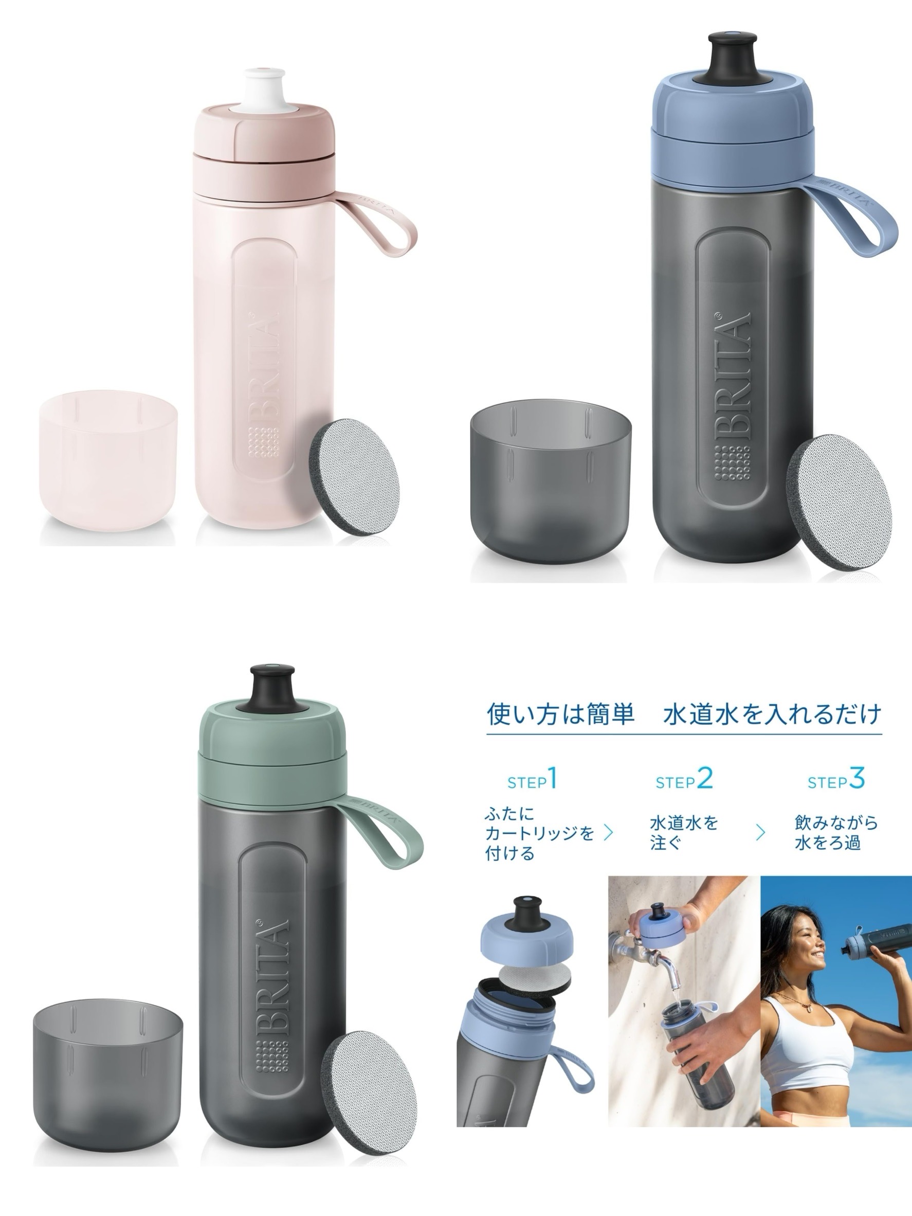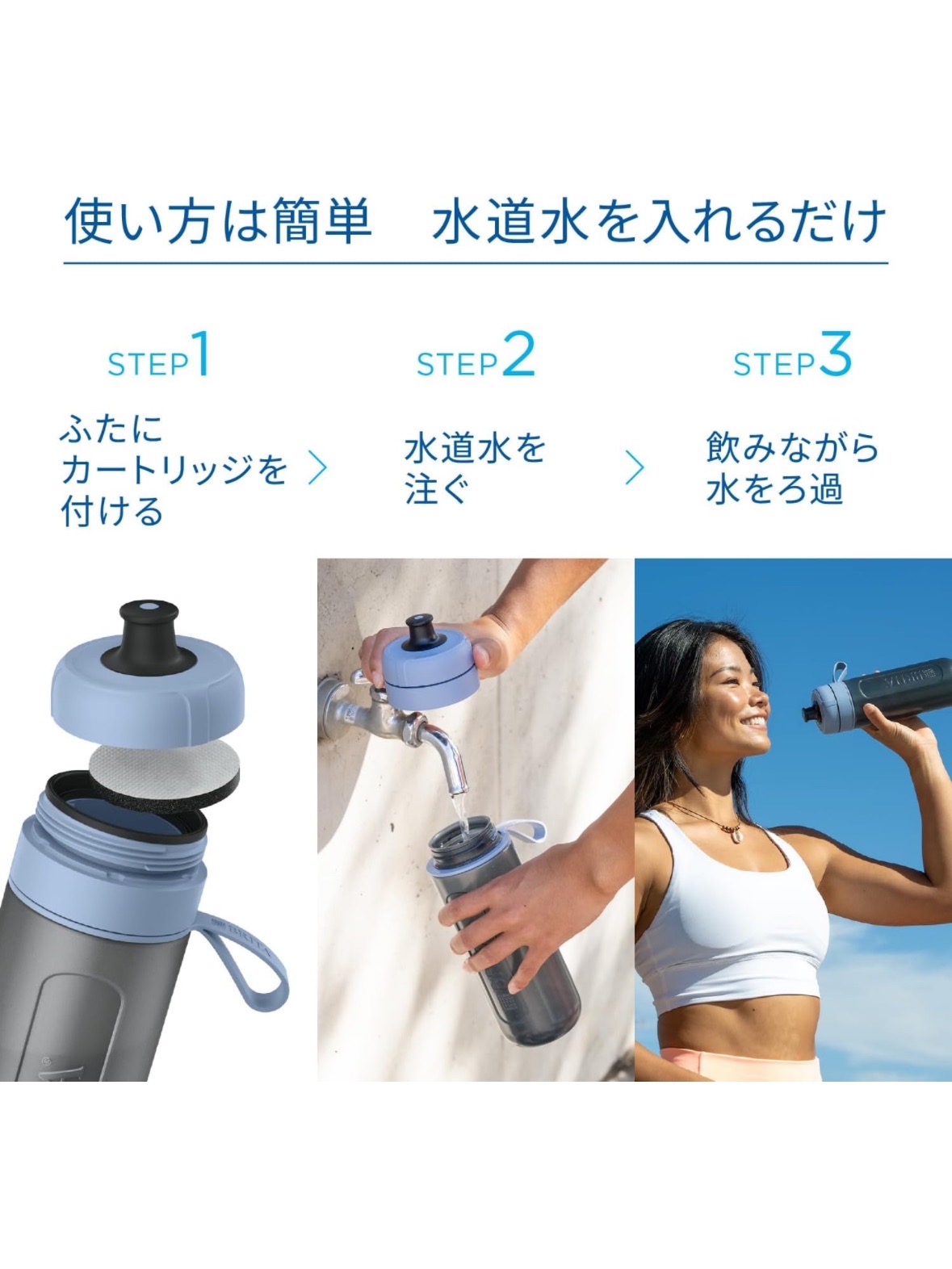 新款 Active 運動濾水瓶 600L 內含1片濾芯 莫蘭迪藍色【日本購入】 製造日期 2023年10月26日 未拆封保存五年