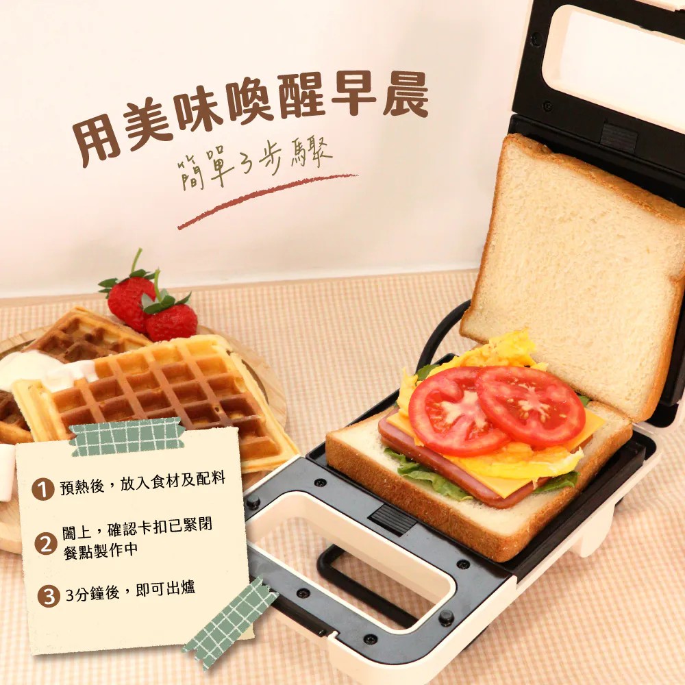 ■二種烤盤-輕鬆隨享創意熱壓三明治及美味格子鬆餅。