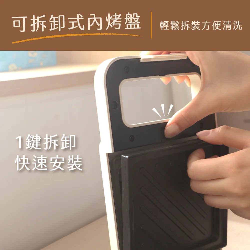 這款三明治機設計上具備可拆卸式內烤盤,讓你在烹調後輕鬆清洗,避免油垢堆積,保持烤盤的潔淨,提升食物的健康與衛生。