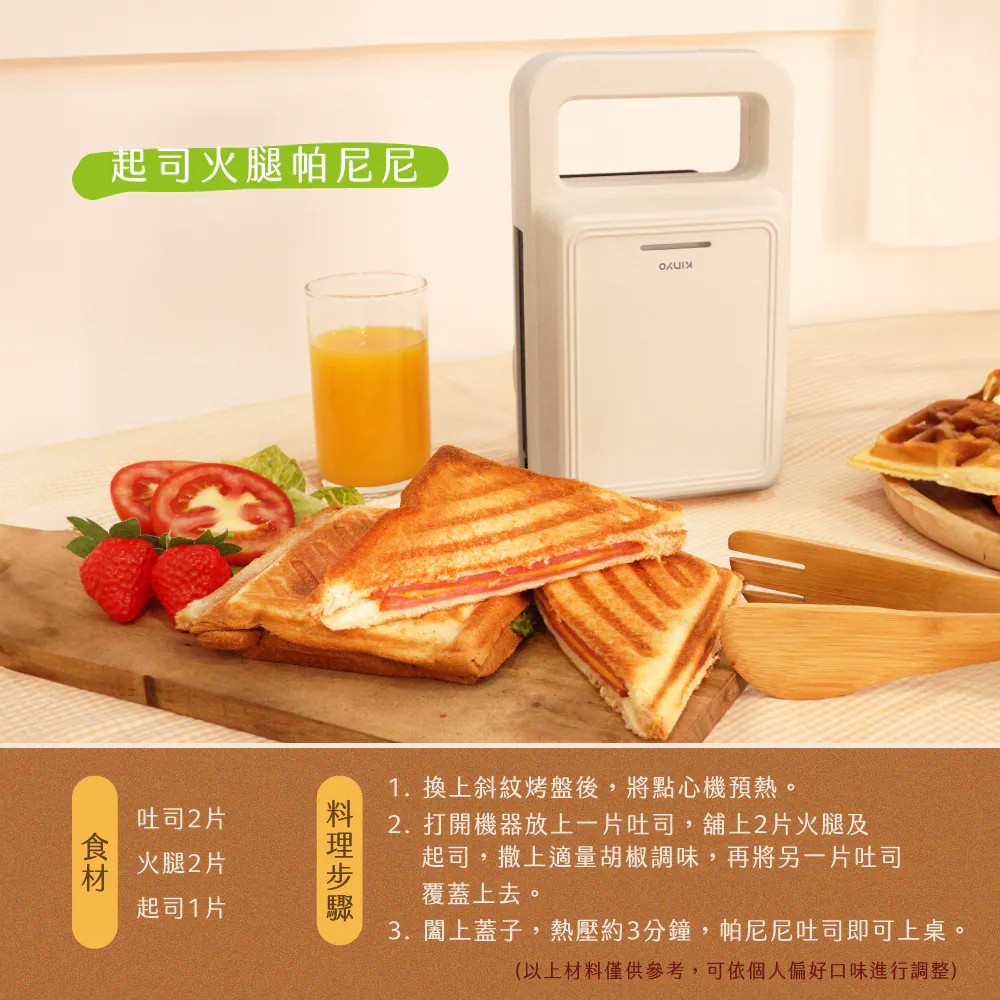 現在就加入KINYO熱壓三明治點心機的使用行列,讓烹飪變得更加簡單與愉快,創造屬於你的美味時光!