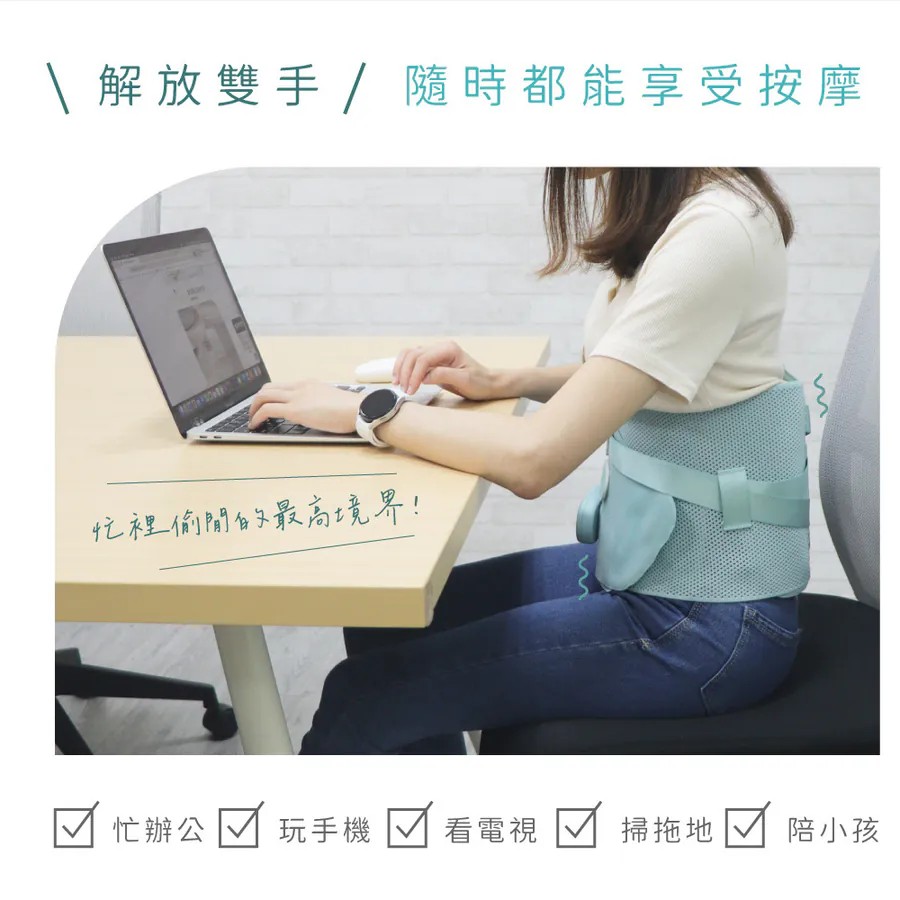 久坐上班族:長時間坐辦公桌容易導致腰部僵硬,使用此按摩帶可有效舒緩。