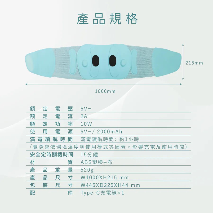 便攜與安全性:內建2000mAh電池,滿電續航約1小時,支援Type-C充電,並具備15分鐘自動關機功能,提升使用安全性。