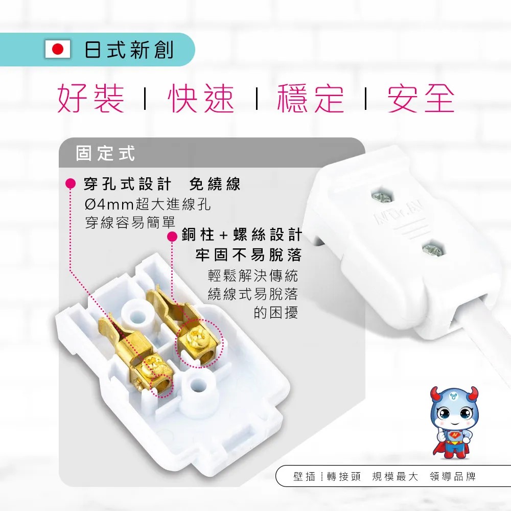 商品簡述: 日本新式快接母插頭