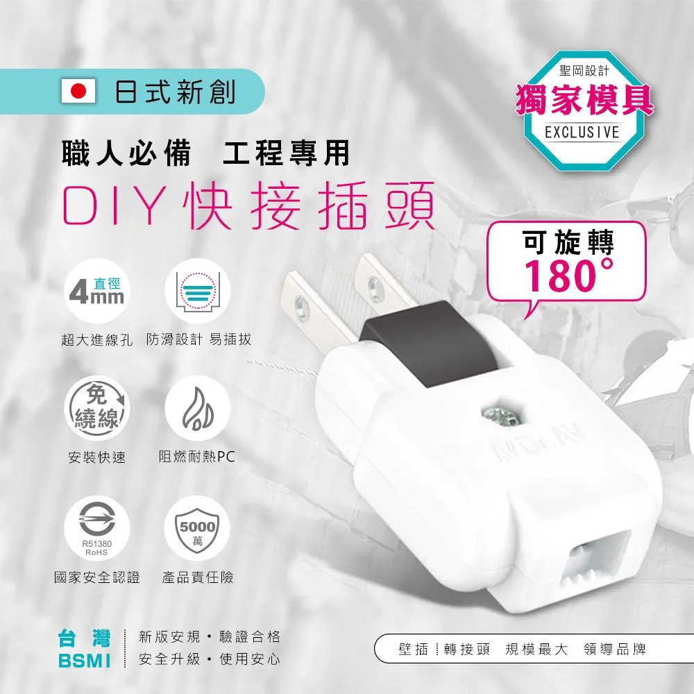 商品簡述: 日本新式快接旋轉插頭