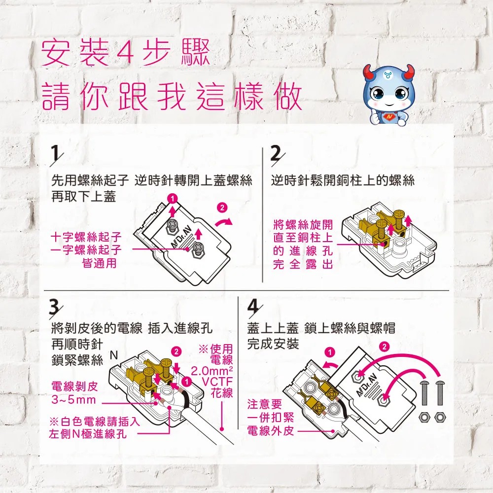 Dr.AV 聖岡科技 TNT-93 新式2P配線快接母插頭