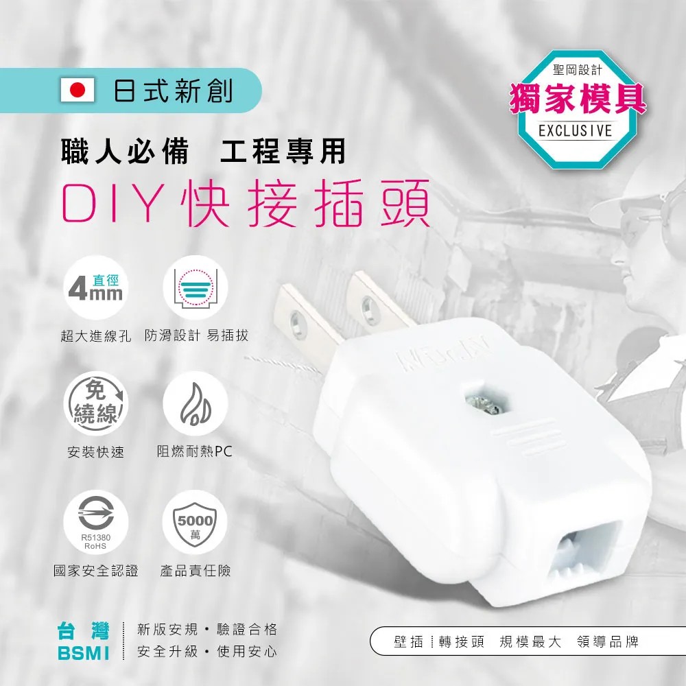 商品簡述: 日本新式快接公插頭