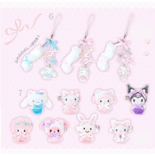 日版-三麗鷗 白貓系列 髮夾盲盒8入 kitty、小羊piano、美樂蒂、大耳狗、庫洛米、蹦蹦兔、好運兔