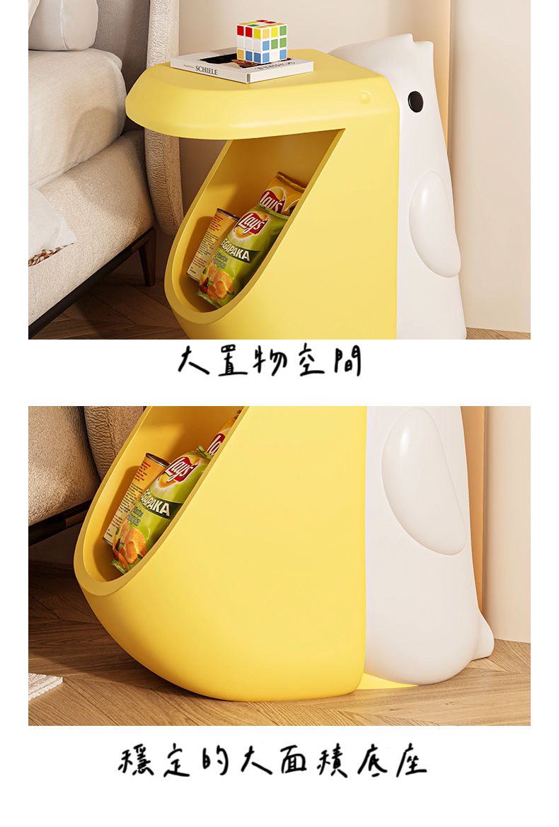 創意外觀設計:靈感來自鵜鶘的大嘴,既是邊桌又是儲物神器,造型俏皮又實用,為家中增添趣味與活力。