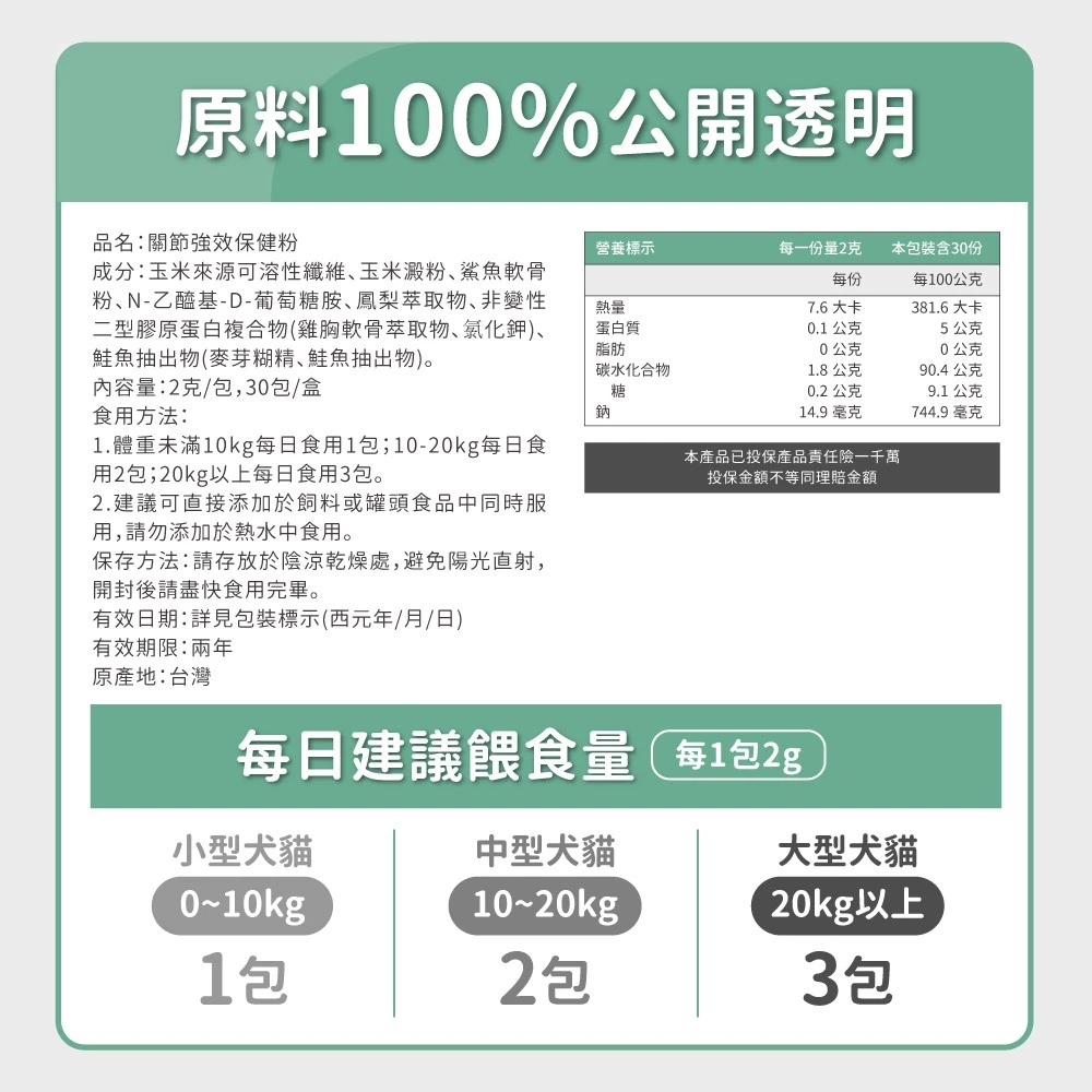 ✔️含超過20%蛋白聚糖,有效幫助犬貓維持關節活動力