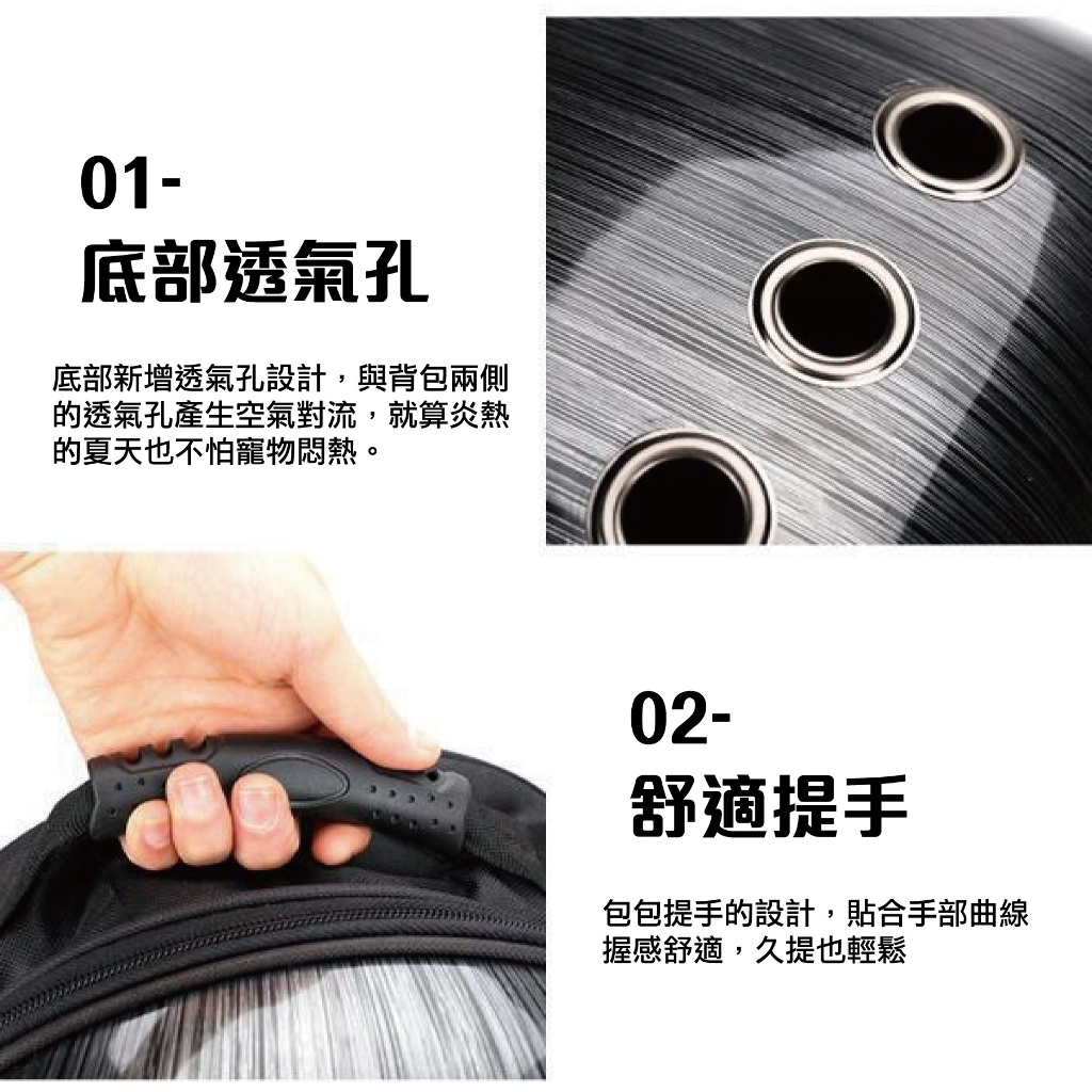 🌸底部新增透氣孔設計,與背包兩側的透氣孔產生空氣對流,就算炎熱的夏天也不怕寵物悶熱啦。