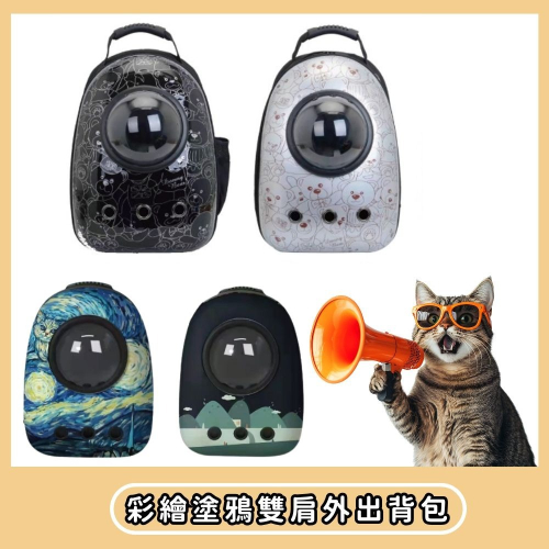 【擊掌寵物】彩繪塗鴉五面透氣雙肩外出背包 寵物提袋 太空包 狗背包 貓背包 寵物外出包 狗外出包 貓外出包 旅行包