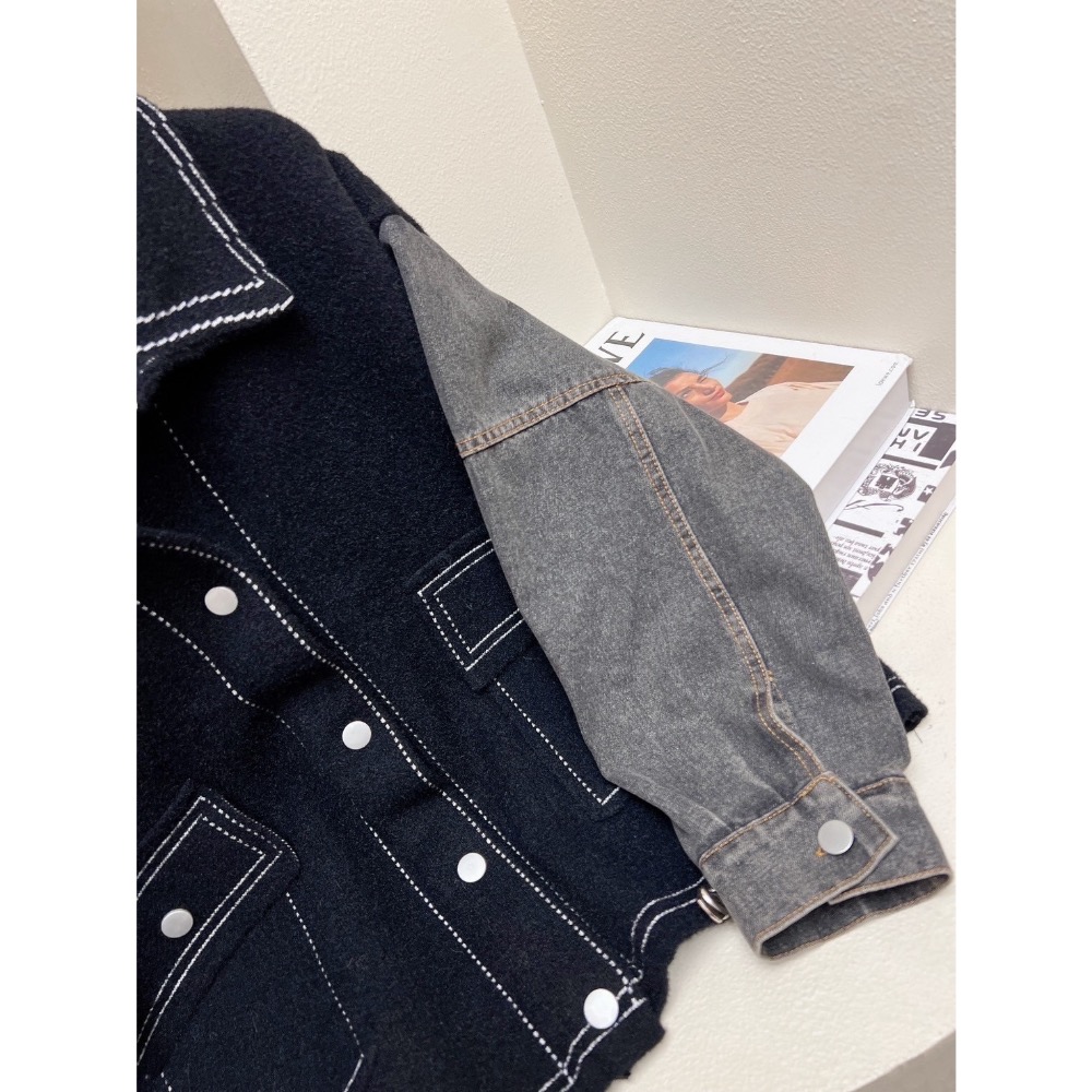 拼接撞色設計,車線細節與拼接口袋,潮流百搭牛仔外套。
