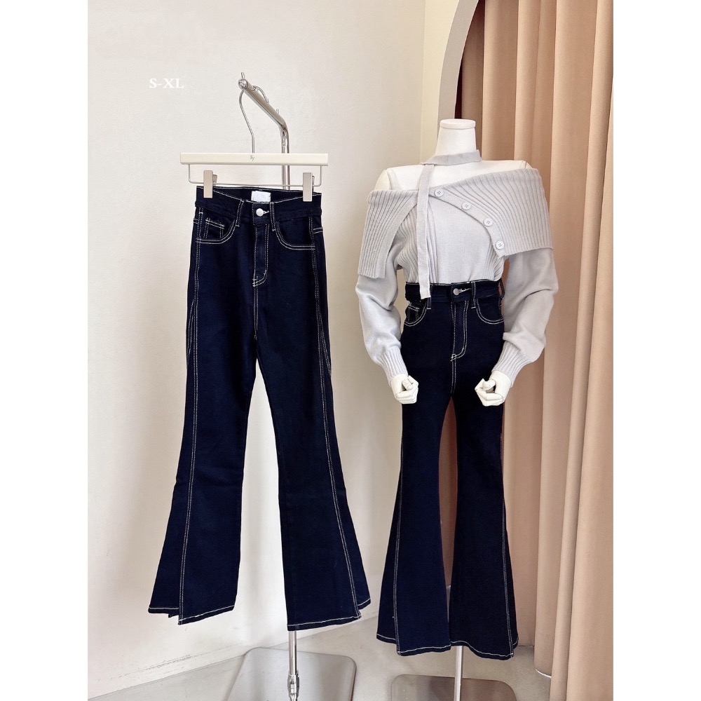 精緻剪裁的高腰喇叭褲,修飾腿型,打造修長比例