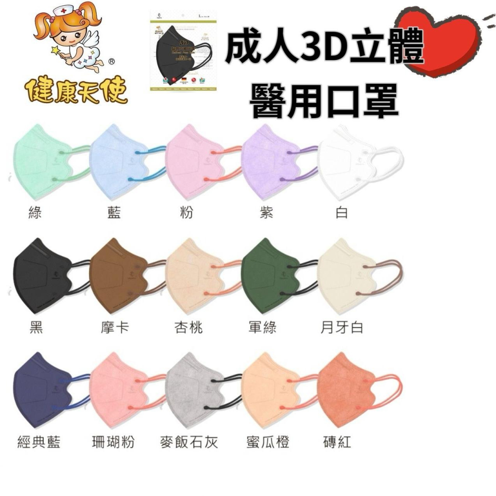 1.醫療器材品名健康天使 醫用立體口罩(未滅菌)