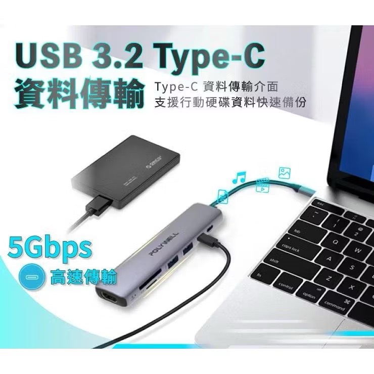 - Type-C資料傳輸 ×1埠: USB3.2 Gen1 傳輸速率5Gbps