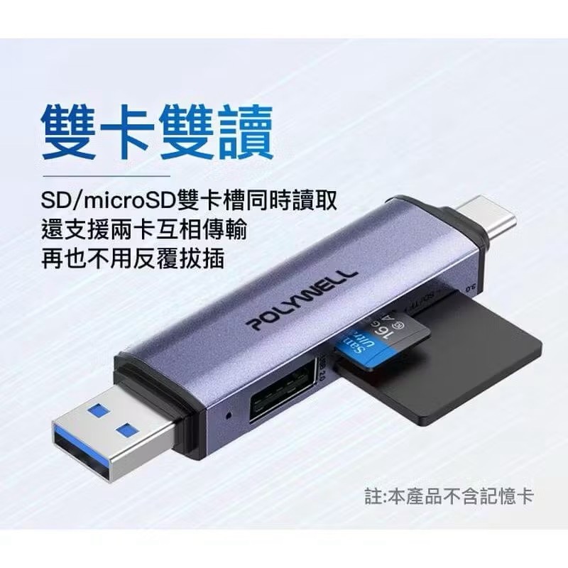 - 輕便型USB-A + Type-C, SD/Micro SD讀卡機