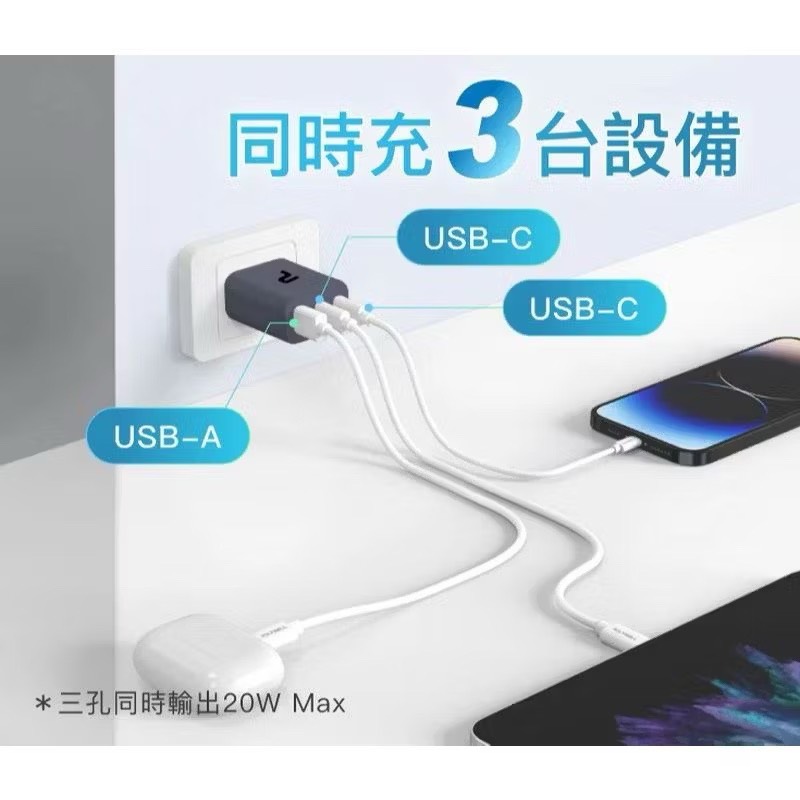 - 採用智能電源管理IC, 三孔同時充電時能動態分配充電瓦數, 達到最佳充電效果