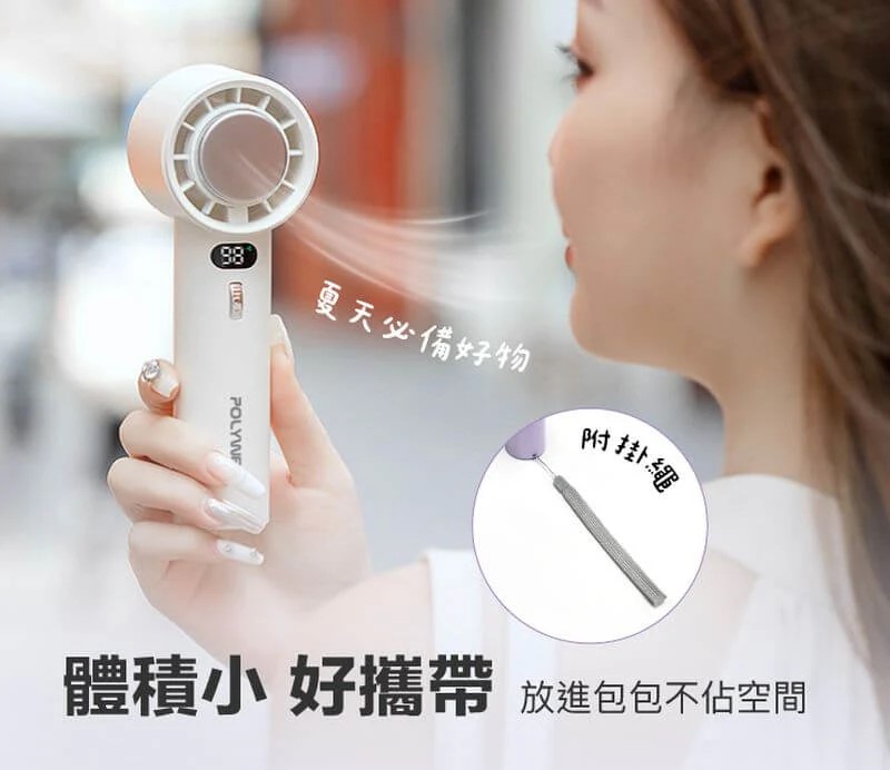 【輕巧好攜帶】包裝內附掛繩可綁在風扇上,掛在手腕輕鬆帶著走