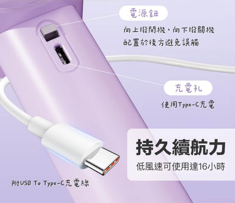 工作時間:單獨風扇約2~16H(依不同檔位及使用場景而定)