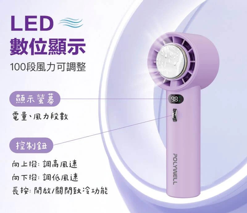 【100段風速微調】上下播動控制鈕可調整風速,長按撥動可快速調整至想要的段數