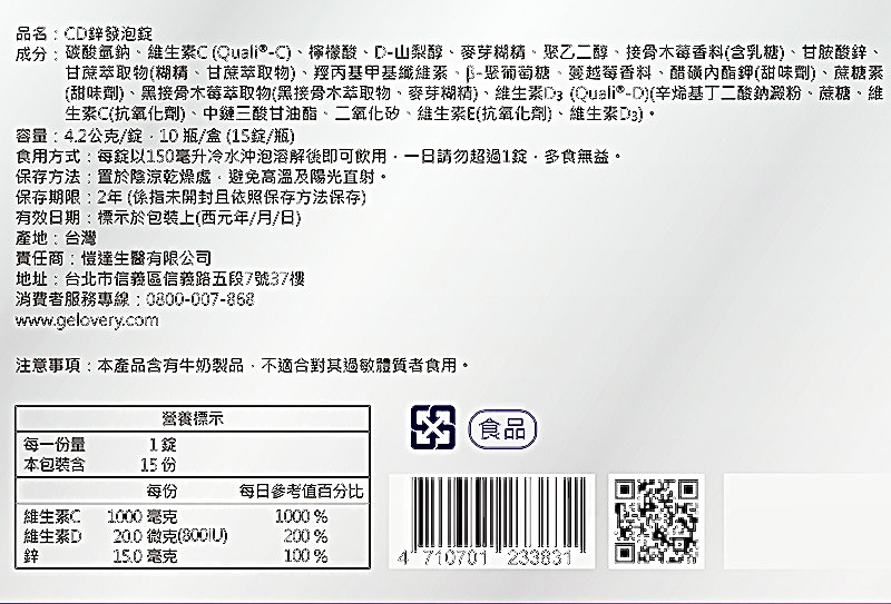 C D 鋅 發泡錠 ( 一瓶 )
