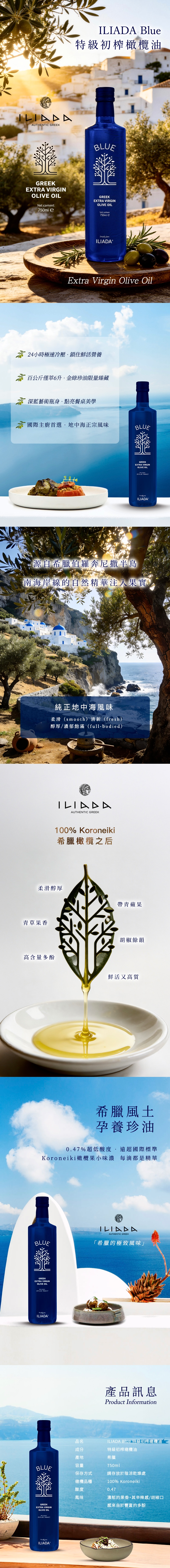ILIADA 希臘 藍瓶 冷壓 初榨 橄欖油