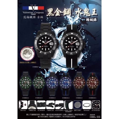 機 芯:原裝日曆機械機芯。 規 格:圓形機械錶。 尺 寸:錶殼直徑約40mm、厚度約13mm、錶帶長度約25cm。 錶 殼:不鏽鋼。 面 板:銅質面盤+大夜光點位。 鏡 面:強化藍寶石玻璃鏡片+改大鏡。 錶 帶:高級不鏽鋼錶帶與矽膠錶帶。 顏 色:4種顏色 2種錶帶類型 防 水:10ATM。 產 地:台灣(授權組裝)。 保固期限:一年。