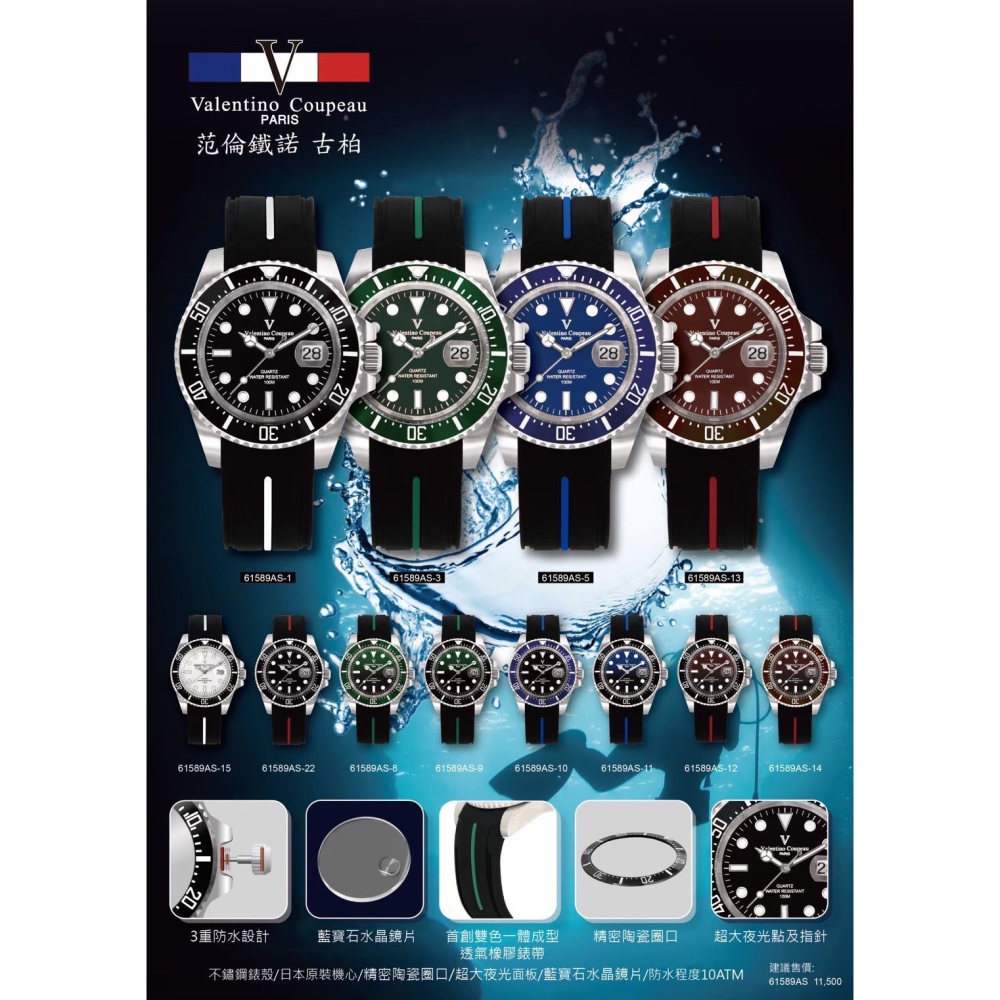 機 芯:日本原裝日曆機芯。 規 格:圓形石英錶。 尺 寸:錶殼直徑約40mm、厚度約13mm、錶帶長度約25cm。 錶 殼:不鏽鋼。 面 板:銅質面盤+大夜光點位。 鏡 面:強化藍寶石玻璃鏡片+改大鏡。 錶 帶:矽膠錶帶。 重 量:約84g。 顏 色:12種顏色 防 水:10ATM。 產 地:台灣(授權組裝)。 保固期限:一年。