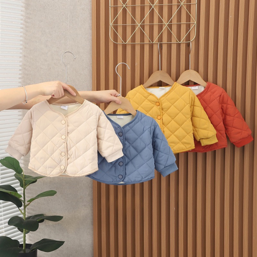 素色菱格壓線加絨外套