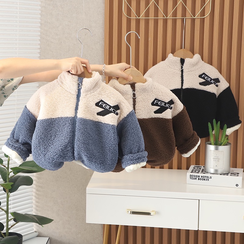 X熊拼色羊羔毛外套