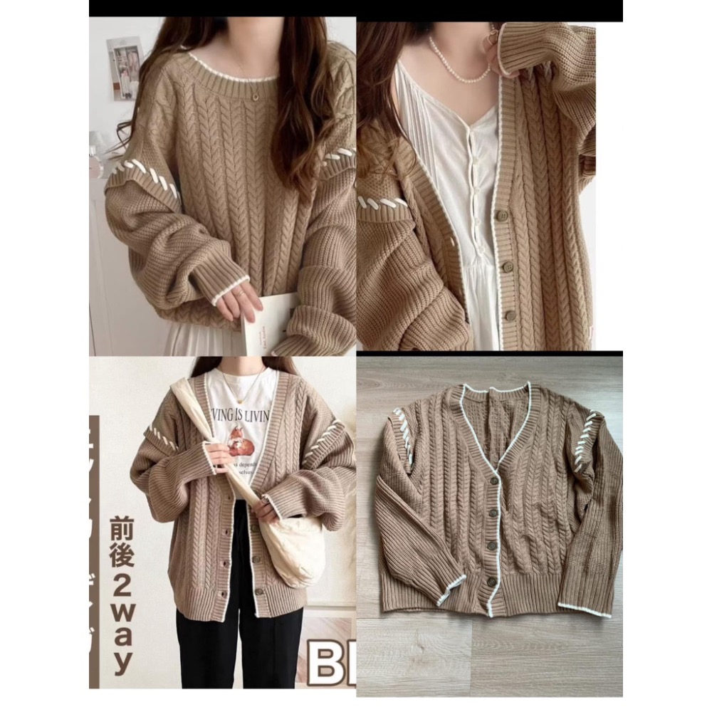 Mei Mie LIU可可色JAVA麻花針織衫落肩粗縫線