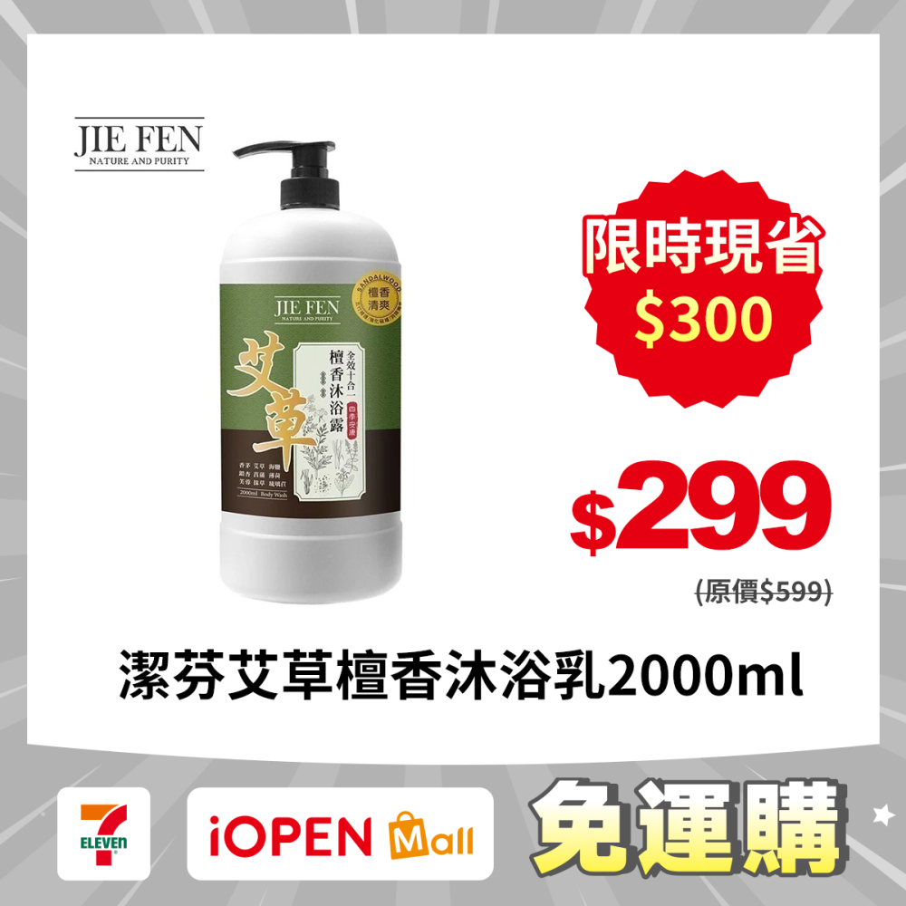 【7-ELEVEN 門市團購】【Jie Fen潔芬】艾草檀香沐浴乳2000ml|除穢淨身|清爽檀香