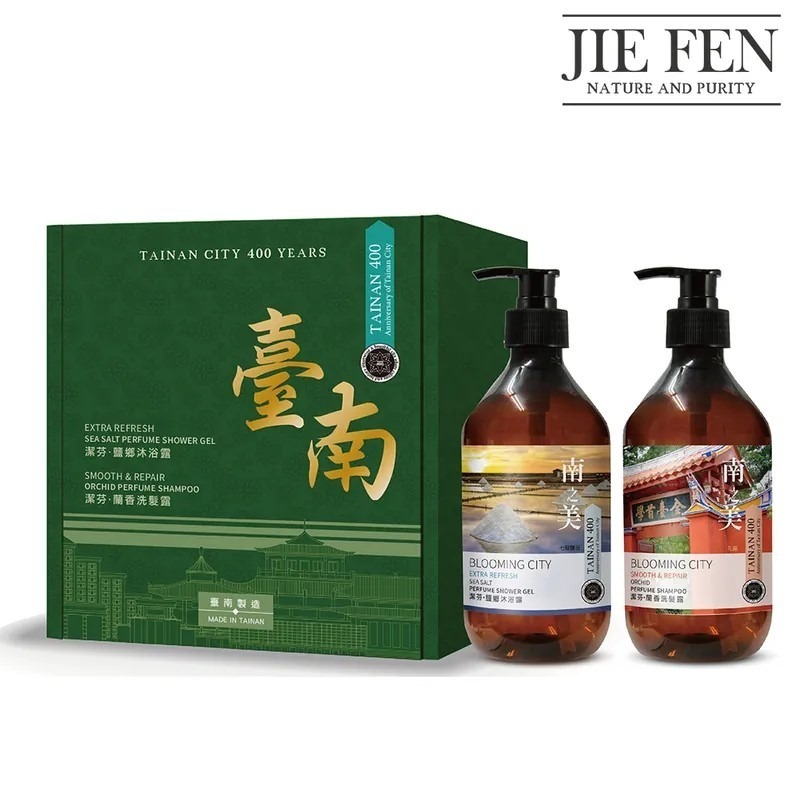 【Jie Fen潔芬】台南400紀念洗沐禮盒(鹽鄉沐浴露500ml/蘭香洗髮露500ml)