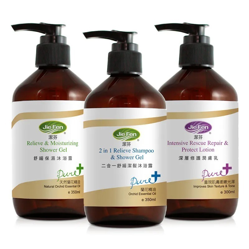 【Jie Fen潔芬】舒緩膚質系列【二合一洗髮沐浴露350ml/舒緩保濕沐浴露350ml/深層修護潤膚乳300ml】