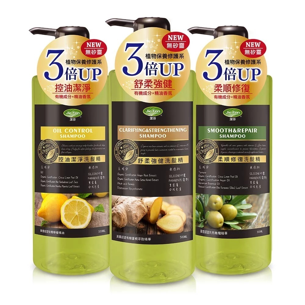【Jie Fen潔芬】植物修復系列洗髮精500ml【控油/柔順/強健】添加歐盟認證有機成分