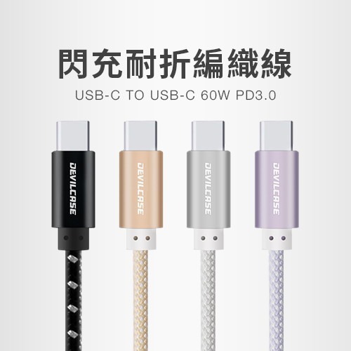 【DEVILCASE】USB-C to USB-C 60W PD3.0 閃充耐折編織線 充電線 傳輸線 蘋果充電線
