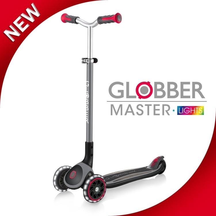 GLOBBER 2合1三輪折疊滑板車大師版(酷炫白光發光輪)-銀河系星際灰