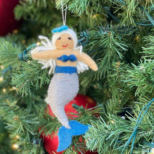 聖誕樹吊飾 美人魚王后抱鯊魚 聖誕裝飾 羊毛氈聖誕掛飾 聖誕佈置