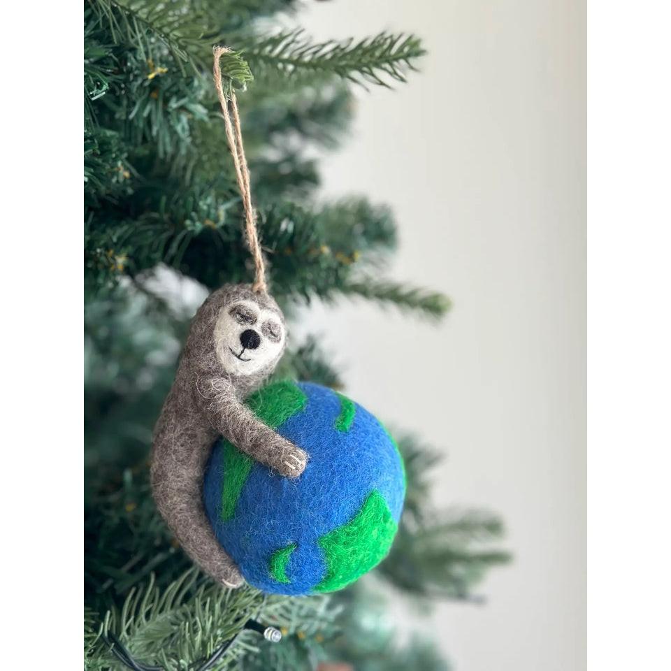 聖誕樹吊飾 樹懶抱地球 聖誕裝飾 羊毛氈聖誕掛飾 聖誕佈置