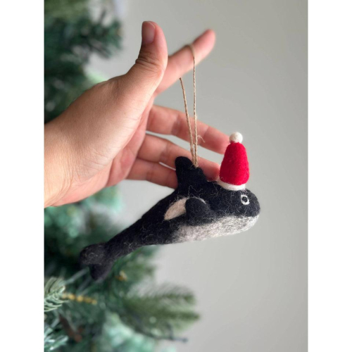 聖誕樹吊飾 虎鯨戴聖誕帽 聖誕裝飾 羊毛氈聖誕掛飾 聖誕佈置