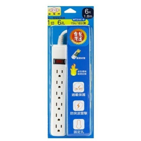 威電牌電腦用延長線WT-3162 6尺 9尺 12尺超取5條台灣製造 安全便利有保障 福利品 出清價