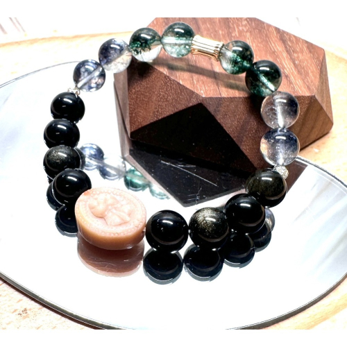 我名為「豐盛與覺醒的使者」。我是妳這條由深邃黑曜石、繁茂綠幽靈、神秘黑幽靈與溫潤阿拉善共同編織而成的保護與成長之鏈。